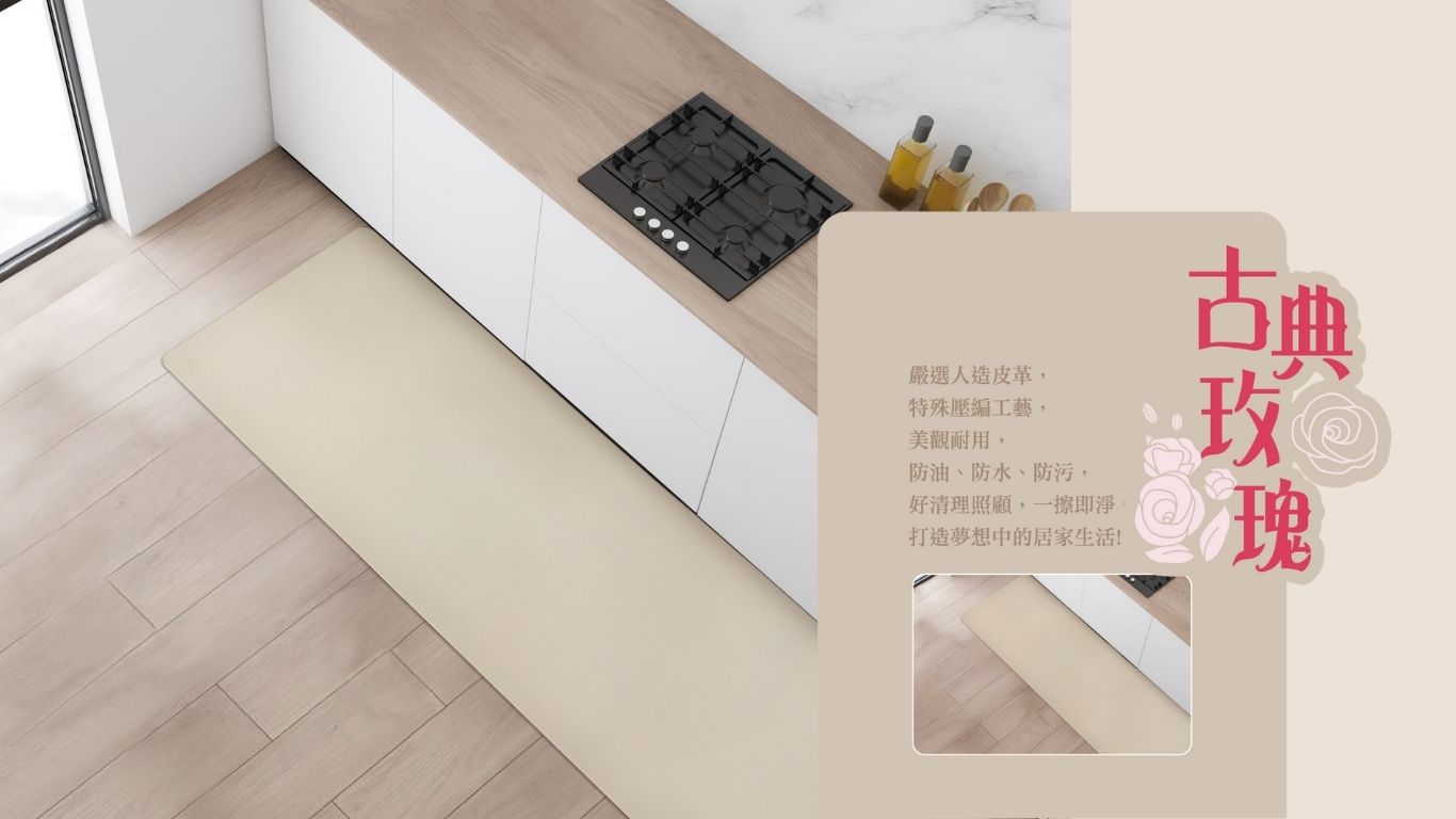 原質所仿皮革廚房50120地墊-古典玫瑰