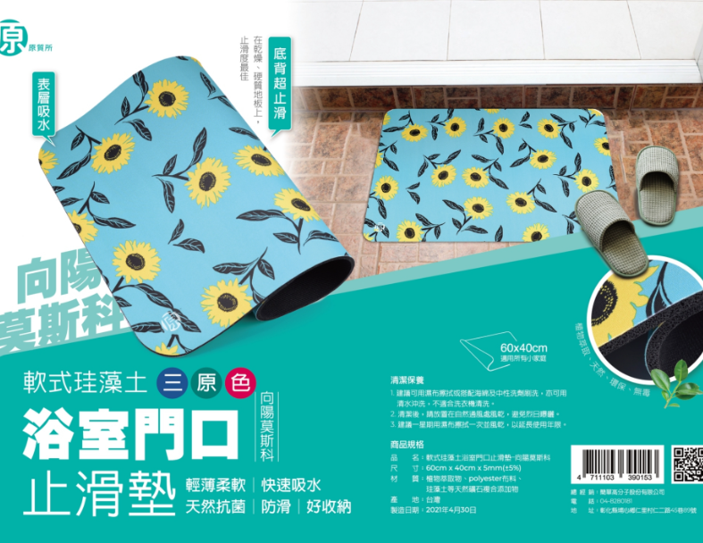 - 品名軟式珪藻土浴室門口止滑墊-向陽莫斯科