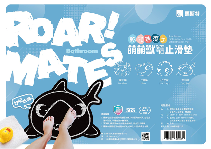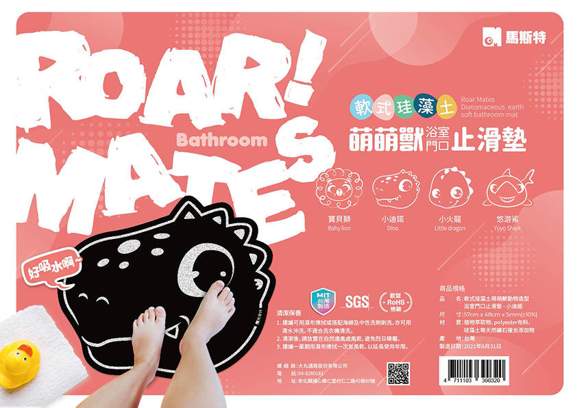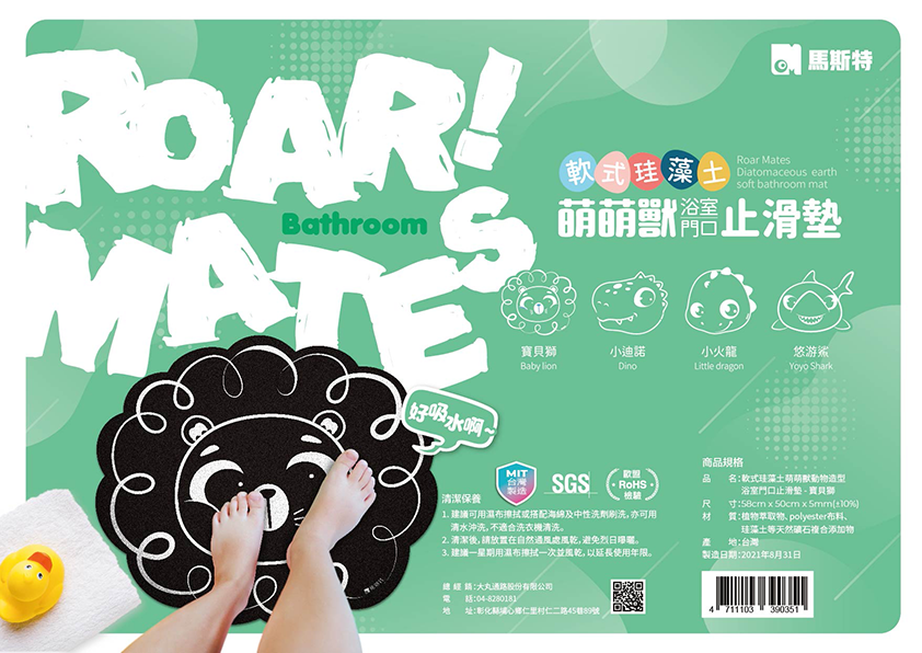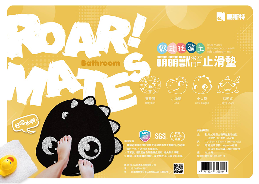 萌萌獸軟式珪藻土浴室吸水止滑墊